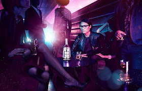 Very futuristic with its gleaming translucent "platinum" bottle with metallic purple accents, the logos are etched in luminescent ink along the label, collar, and cork, and are visible only under black light - the perfect lounge-slash-clubbing tipple.