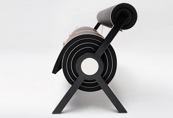 Made from high-tech black electrical tape that you can roll up and fasten with plush leather suspenders, the Parisian designers from 5.5 Studios have envisioned the Karpett to serve multiple purposes - a loungey chaise, a temporary napping mat, or a play area for toddlers and the young-at-heart.