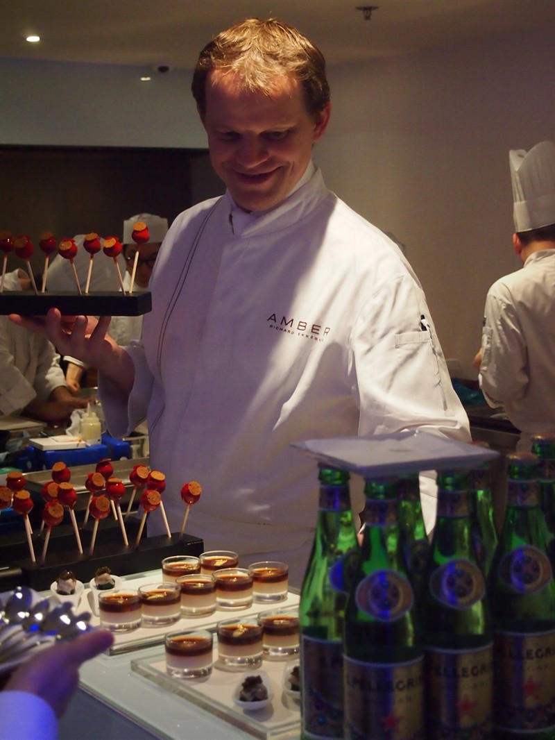 A sumptuous cocktail party-cum-dinner was held on November 29 to fete the arrival of S. Pellegrino X Bulgari limited edition bottle in Hong Kong. As previously reported, only 50 million "S.Pellegrino sparkles with Bulgari” bottles will be distributed worldwide. Served alongside S. Pellegrino, a unique fine dining experience was presented, whereby Amber's Richard Ekkebus cooked up a storm of delectable canapes.