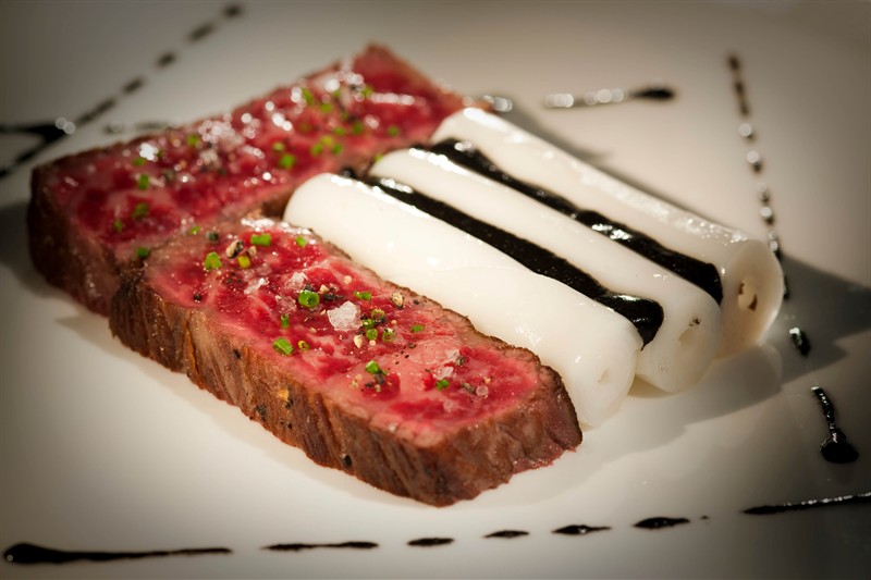 Saga-gyu beef, black truffle soy, cheung fun (Bo Innovation)