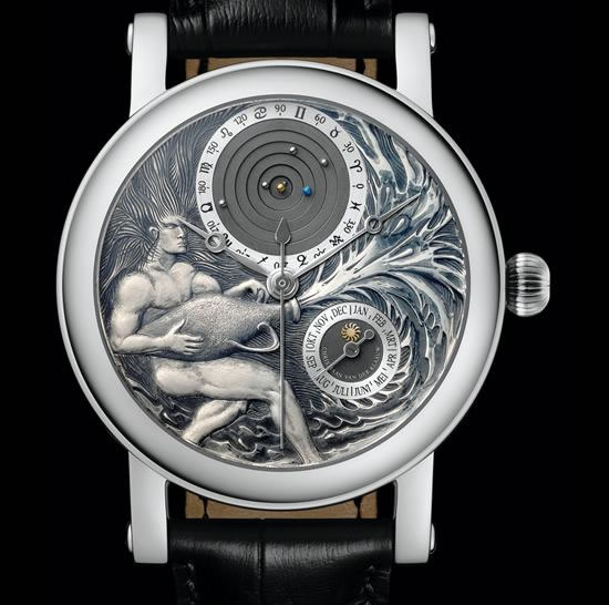 How would you like the entire universe on your wrist? Well, as the year ends, the Dutch watchmaker Christiaan van der Klaauw has done just that with the Aquarius Planetarium. The smallest planetarium in the world sports a Sun with six planets orbiting around it. The watch sports Mercury, Venus, Earth, Mars, Jupiter, and Saturn orbiting the Sun. may be rescission hits the planets too as Neptune, Uranus, PIuto and the moons are conspicuously missing. However, it doesn’t seem too bad because the watch does come with a platinum case with a stunningly carved gold dial face.